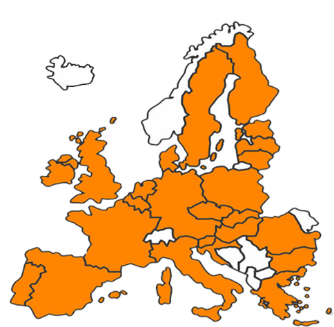 Se herunder de 28 stater, hvori Europæiske Forordning EU261/2004 gælder.